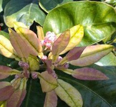 常绿乔木,叶互生,单身复叶,常常覆盖有蜡质;叶尖钝形,有时微缺;叶缘为全缘至波状缘;脉序为双子叶植物典型的羽状网脉。叶质颇厚,色浓绿,阔卵形或椭圆形,连冀叶长9-16厘米,宽4-8厘米,或更大,顶端钝或圆,有时短尖,基部圆,翼叶长2-4厘米,宽0.5-3厘米;嫩叶通常暗紫红色,嫩枝扁且有棱。